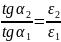 Таким образом, при переходе через границу раздела двух диэлектрических сред тангенциальная составляющая вектора Из условий (1) — (4) для составляющих векторов E2τ= E1τ ; ε2E2n= ε1E1n => Получим закон преломления линий напряженности