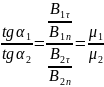 - углы между линией индукции (напряженности) и нормалью к поверхности раздела магнетиков.
