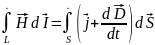 | 21. Закон электромагнитной индукции и первое уравнение Максвелла. 1)Эл. ток в цепи возможен, если на свободные заряды проводника действуют сторонние силы. Работа этих сил по перемещению единичного положительного заряда вдоль замкнутого контура называется ЭДС. При изменении магнитного потока через поверхность, ограниченную контуром, в контуре появляются сторонние силы, действие которых характеризуется ЭДС индукции. Учитывая направление индукционного тока, согласно правилу Ленца: э.д.с. индукции в контуре ЭДС индукции в замкнутом контуре равна скорости изменения магнитного потока через поверхность, ограниченную контуром, взятой с противоположным знаком. Минус т.к. индукционный ток противодействует изменению магнитного потока, ЭДС индукции и скорость изменения магнитного потока имеют разные знаки. Если рассматривать не единичный контур, а катушку, где N- число витков в катушке: . Величину индукционного тока можно рассчитать по закону Ома для замкнутой цепи где R - сопротивление проводника. 2) Первое уравнение Максвелла. Первое уравнение Максвелла является обобщением закона электромагнитной индукции, которое в интегральной форме имеет вид Из выражения для магнитного потока следует → | 22. Ток смещения. Закон полного тока и второе уравнение Максвелла. 1)Ток смещения. Для установления количественных соотношений между изменяющимся электрическим полем и вызываемым им магнитным полем Максвелл ввел в рассмотрение так называемый ток смещения. Рассмотрим цепь переменного тока, содержащую конденсатор. Между обкладками заряжающегося и разряжающегося конденсатора имеется переменное электрическое поле, поэтому, согласно Максвеллу, через конденсатор «протекают» токи смещения, причем в тех участках, где отсутствуют проводники. Найдем количественную связь между изменяющимся электрическим и вызываемым им магнитным полями. Переменное электрическое поле в конденсаторе в каждый момент времени создает такое магнитное поле, как если бы между обкладками конденсатора существовал ток проводимости, равный току в подводящих проводах. Тогда можно утверждать, что токи проводимости I и смещения Iсм равны: I= Iсм. Ток проводимости вблизи обкладок конденсатора 2)Второе уравнении Максвелла. Обобщенная теорема о циркуляции вектора Н. Максвелл обобщил теорему о циркуляции вектора ( ) введя в ее правую часть полный ток, Iполн= сквозь поверхность S, натянутую на замкнутый контур L. Тогда обобщенная теорема о циркуляции имеет вид: |