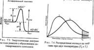В активированном комплексе старые связи еще не разорваны, но уже ослаблены, новые связи наметились, но еще не образовались Время существования его невелико (порядка 10^-14 — 10^-11с). При распаде комплекса образуются либо продукты реакции, либо исходные вещества. Для образования переходного комплекса необходима энергия. Система в переходном состоянии имеет более высокую энергию, чем в исходном (Ннач) и конечном (Нкон) состояниях. Энергия, необходимая для перехода вещества в состояние активированного комплекса, называется энергией активации. Возможность образования активированного комплекса, а соответственно и химического взаимодействия, определяется энергией молекул. Молекула, энергия которой достаточна для образования активированного комплекса, называется активной. Доля их в системе зависит от температуры. Как было показано в гл. 4, частицы распределяются по энергиям по сложной кривой Максвелла—Больцмана, которая изменяется с увеличением температуры. Как видно из рис. с увеличением температуры растет доля молекул, энергия которых равна или выше энергии активации Еа, соответственно растет доля молекул,