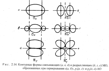 МО.π-Молекулярные орбитали также формируются при комбинации р- и d-AQ и некоторых d-AO. Кроме того при комбинации d-AO образуются