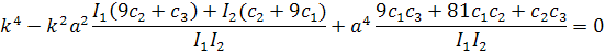 1. Найдем пропорции, при которых парциальные частоты k1 и k2 можно считать корнями частотного уравнения.