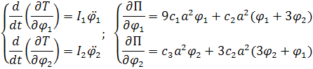 1. Составим уравнение Лагранжа 2ого рода для собственных колебаний данной системы.