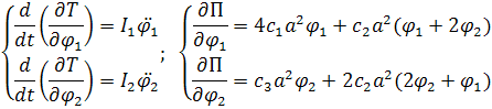 1. Составим уравнение Лагранжа 2ого рода для собственных колебаний данной системы.