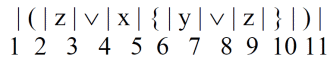 При развертывании выражения в слово xyz порядок переходов будет следующий: непосредственный переход от места 1 к месту 4 переход через букву x – от 4 к 5, непосредственный переход – от 5 к 6, переход через букву у – от 6 к 7, непосредственный переход от 7 к 10, непосредственный переход от 10 к 8, переход через букву z – от 8 к 9, непосредственный переход от 9 к 10 и непосредственный переход от 10 к 11.