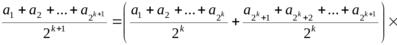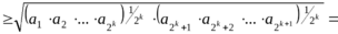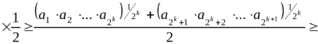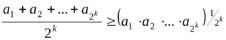 Итак, мы доказали неравенство Коши, когда количество чисел в средних есть степень двойки. А как быть с остальными? Для них мы докажем неравенство Коши, используя еще одну модификацию индукции – "индукцию вниз". Допустим, что неравенство Коши верно для n=k, то есть допустим, что