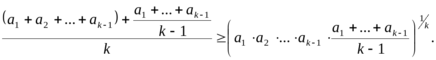 и докажем это неравенство для n=k-1. Для этого в неравенстве Коши положим