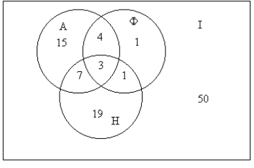 Решение. Введем обозначения: I – множество всех опрошенных студентов; А – множество студентов, изучающих английский язык; Н – множество студентов, изучающих немецкий язык; Ф – множество студентов, изучающих французский язык (См. диаграмму Эйлера-Венна на рис. 1.1)
