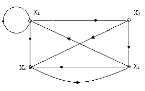 Пример 2.1 Построить граф G, заданный множеством вершин Х={X1, X2, X3, X4} и их отображениями Г(Х1)={X1, X2}, Г(Х2)={X3, X4}, Г(X3)={X1, X4}, Г(Х4)={X1, X2, X3}.