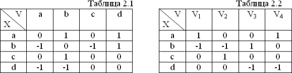 В матрице инцидентности координатами строк являются элементы множества вершин, а координатами столбцов – элементы множества ребер. Элемент матрицы в строке i и столбце j равен 1, если ребро j исходит из вершины i, -1 – если ребро j входит в вершину i, 0 – если ребро j не инцидентно вершине i. Матрица инцидентности приведена в таблице 2.2.