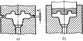 Рис. Схемы объемной формовки: а – в открытых штампах; б – в закрытых штампах.