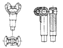Благодаря наличию выталкивателей в штампах КГШП штамповочные уклоны назначают примерно в два раза меньшими, чем на молотах. (Удаление поковок из ручьев молотового штампа производится вручную, клещами. Поэтому молотовые поковки имеют большие штамповочные уклоны, чтобы их легко можно было извлекать из штампа. На прессовых штампах устанавливают безотказно действующие механические выталкиватели, что позволяет уменьшить величину штамповочных уклонов, а иногда и вовсе обойтись без них, т. е. штамповать поковки с вертикальными стенками. Это сокращает расход материала на поковку, уменьшает трудоемкость механической обработки, а в некоторых случаях позволяет избежать обработки резанием, применяя после штамповки калибровочные операции.)