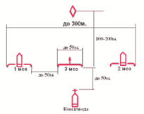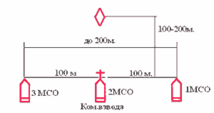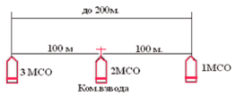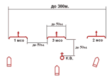 | Боевой порядок взвода при наступлении в пешем порядке. | |