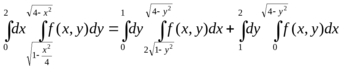 Область интегрирования симметрична относительно оси абсцисс, следовательно, двойной интеграл равен нулю.