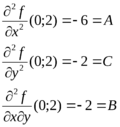 Вычислим значение этих частных производных второго порядка в критической точке (0;2)
