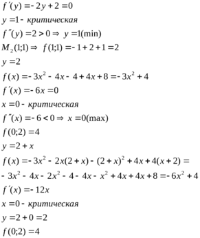 AC - B2 = 8 > 0 и A < 0 , то в точке (0;2) имеется глобальный максимум f(0;2) = 4