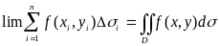 - любая функция двух переменных (не обязательно положительная), непрерывная в некоторой области D, ограниченной замкнутой линией. Разобьем область D на частичные, как указано выше, выберем в каждой частичной области по произвольной точке