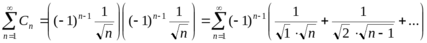 так же сходится абсолютно и его сумма равна произведению сумм перемножаемых рядов