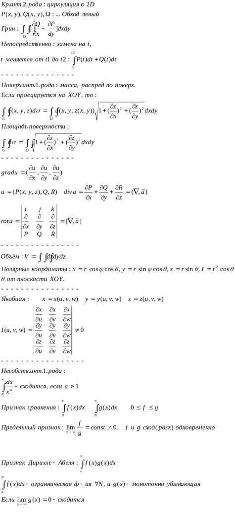 шпора по формулам - кратные интегралы (1021454)
