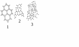 Рис.6.1. Расположение SiO4–тетраэдров в кварце (1), неупорядоченном кварцевом стекле (2), натриевом силикатном стекле (3).