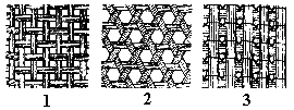 Рис.7.2. Тканные структуры композиционных материалов. 1-двухосная, 2-трехосная, 3-вязаяная.