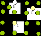 Дефекты в кристаллах классифицируют по их размерам — точечные (или атомные, нульмерные), линейные (одномерные) и поверхностные (двумерные). Точечные дефекты (рис. 2.5)—это атомы примесей, замещающие атомы основного вещества в узлах решетки (1) или располагающиеся в междуузлиях (2), или атомы основного вещества, отсутствующие или смещенные из нормальных узлов (3). Узел решетки, в котором отсутствует атом, называется вакансией или дефектом по Шоттки. Совокупность вакансии и междуузлия называется дефектом по Френкелю. Вакансии и междуузельные атомы могут перемещаться в кристалле. Появление вакансии в новом месте происходит в результате переноса соседнего атома в свободный узел. Движение междуузельных атомов носит более сложный характер, в некоторых случаях их перемещение осуществляется целиком по междуузлиям.