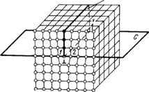 Кроме углов и направлений решетка содержит множество идентичных кристаллических плоскостей (рис. 2.4), также определяющих свойства кристаллов. Например, пластическая деформация, рост и скол кристаллов проходят легче по определенным плоскостям. Плоскость может быть задана либо направлением нормали [uvw], либо отрезками, отсекаемыми на координатных осях. В последнем случае уравнение плоскости имеет вид х/u + у/v + z/w = 1, где координатные оси х, у, z пересекаются в точках u, v, w. Это уравнение можно переписать в виде hx + ky + lz = 1, где h, k, l — обратные величины отсекаемых отрезков.