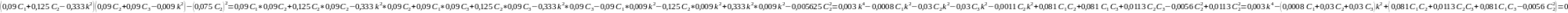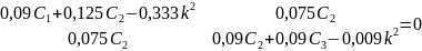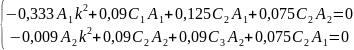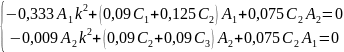 Системы уравнений (*)будем иметь решение отличное от нуля, если определитель, состоящий из коэффициента при неизвестных равен нулю: