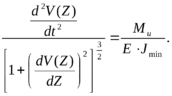 В случае потери устойчивости стержень всегда прогибается в плоскости наименьшей жесткости. Поэтому момент инерции не зависимо от обозначения осей при расчете стержней на устойчивость принято обозначать «J min». Дифференциальное уравнение упругой линии балки при продольном изгибе записывается следующим образом :