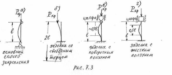 На рис. 12.3. показано для каких длин стержней выполняется полусинусоида при различных способах закрепления.