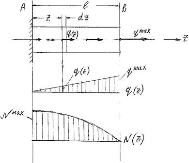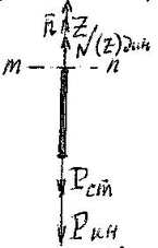 Из расчётной схемы на рис. 17.5 следует, что от действия центробежных сил инерции возникнет нормальная сила N(z). Уравнение равновесия запишется в следующем виде:
