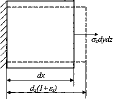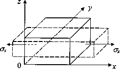 При таком нагружении происходит увеличение размеров в направлении оси Ох, характеризуемое линейной деформацией , которая пропорциональна величине напряжения