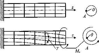 Рис. 10.3. Иллюстрация кручения: а) исходное и б) деформированное состояния