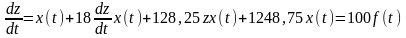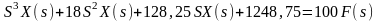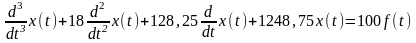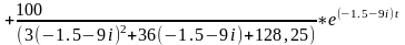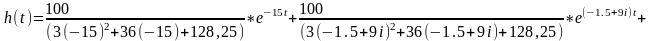 h = 1+100/(3*(-15)*3*(-15)+36*(-15)+128.25)*exp((-15)*t)+100/(3*(-1.5)*3*(-1.5)+36*(-1.5)+128.25)*exp((-1.5)*t)