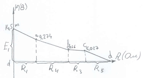 2)φm= φd+E1=14,5 B 5) φc= φb-I3R3=5,027 B