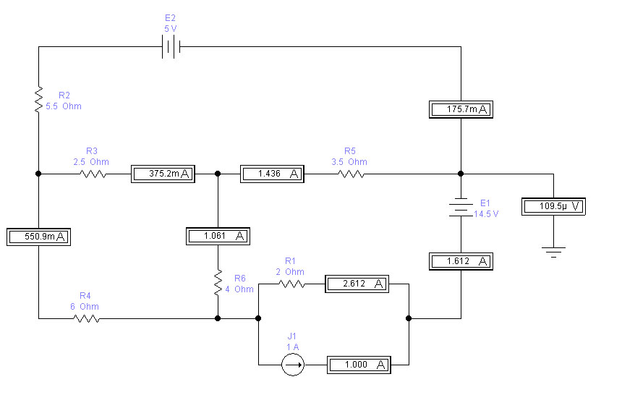 3) φa= φm+I1R1=9,274 B 6) φd= φc-I5R5=0