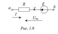 Обобщенный закон Ома используется в тех случаях, когда в ветви присутствует источник электрической энергии (рис. 1.9).