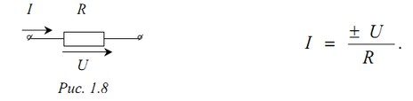 Закон Ома для участка цепи используется для ветвей, не содержащих источников электрической энергии (рис. 1.8)