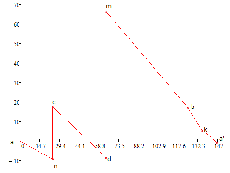 6) Чертим потенциальную диаграмму контура, включающего в себя 2 ЭДС.