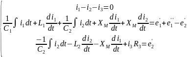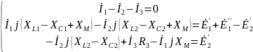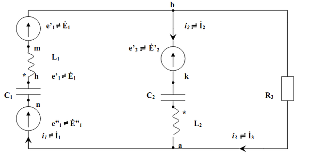8) Предполагаем, что между двумя катушками существует индуктивная связь с коэффициентом взаимной индукции М. Составим систему уравнений для расчета токов по законам Кирхгоффа в общем виде.