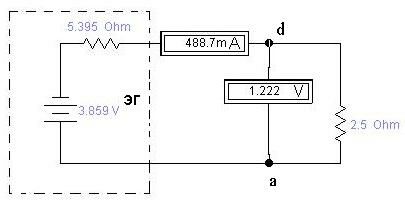 что совпадает со значением тока I1 в таблице п.5: 0.489=0.489 А.