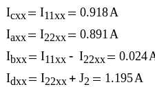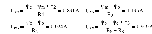 Методом компьютерного моделирования для схемы№4 были получены значения неизвестных токов Iaxx=0.894 A, Ibxx=0.024 A, Icxx=0.919 A, Idxx=1.194 A.