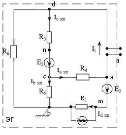 , т.е. рассмотрим схему 2 в режиме хх. Получим схему, соответствующую эквивалентному генератору. Это новая схема 4, в которой выбираем направления новых токов