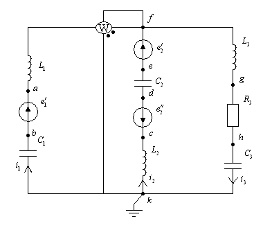 Схему 1.2 представить как Т-схему пассивного четырёхполюсника. С этой целью все источники ЭДС в схеме закоротить , а левую(первую) и правую(третью) ветви разомкнуть. Разомкнутые зажимы левой ветви обозначить 1-1' и считать их входными, а разомкнутые зажимы правой ветви обозначить 2-2' и считать их выходными. Сопротивление левой ветви обозначить Z1, средней Z3 , правой Z2. Для полученной схемы составить уравнения четырёхполюсника в одной из матричных форм записи(A, Y, Z, H, G). Записать формулы для элементов матрицы сначала в общем виде, а затем в числовом.