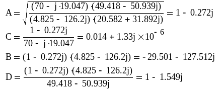 Зная коэффициенты A, B, C, D, определим параметры П-схемы замещения:
