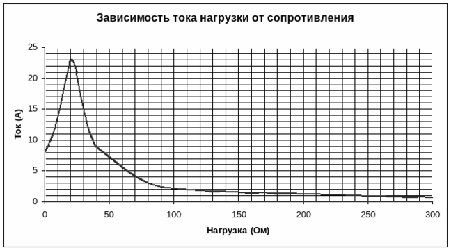 6. Пользуясь круговой диаграммой, построить график изменения тока в изменяющемся сопротивлении в зависимости от модуля сопротивления.