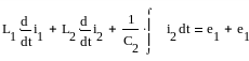 а) Запишем систему уравнений по законам Кирхгофа в системе оригиналов, т.е. в интегрально-дифференциальной форме, для встречного включения катушек.