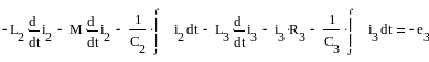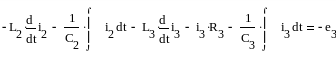 | Дано: L1=1,6 мГн=0,64 10-3 Гн L2=0,4 мГн=0,4 10-3 Гн L3=6,33 мГн=6,33 10-3 Гн C2=3,19 мкФ=3,19 10-6 Ф C3=1 мкФ=1 10-6 Ф R3=25 Ом f=2000 Гц | e’1=50sin(ωt+20°) В e”1=20,5cos(ωt-70°)=20,5sin(ωt70°+90°)= =20,5sin(ωt+20°) В e’3=84,6cos(ωt-100°)=84,6sin(ωt-100°+90°)= =84,6sin(ωt-10°) В e”3=0 В |