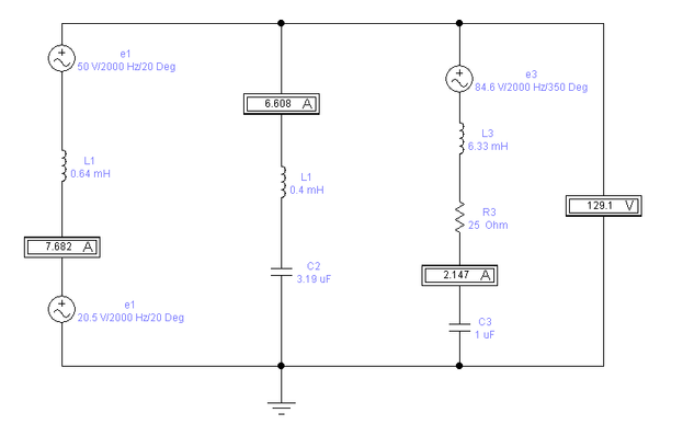 4. Сравнить показания величин с расчетными. Совпадение значений модулей токов и напряжений при расчете и компьютерном моделировании является достаточным для подтверждения правильности расчета.