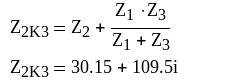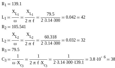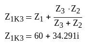 Z2= jXL3−jXС3= jωL2 − j/(ωC3) = j2πfL3 −j/(2πfC3)=j(109,27−29,82)=j79,5 Ом